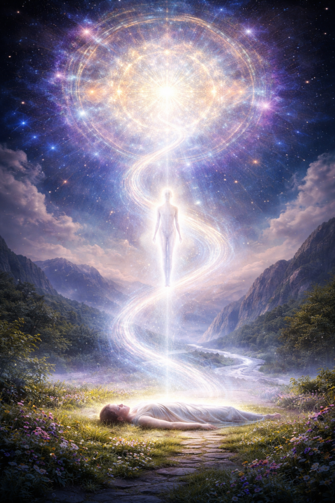Cuando el cuerpo ya no puede sostener la experiencia, la conciencia se desprende, como quien se quita un traje gastado. No hay castigo ni premio automático: hay comprensión.