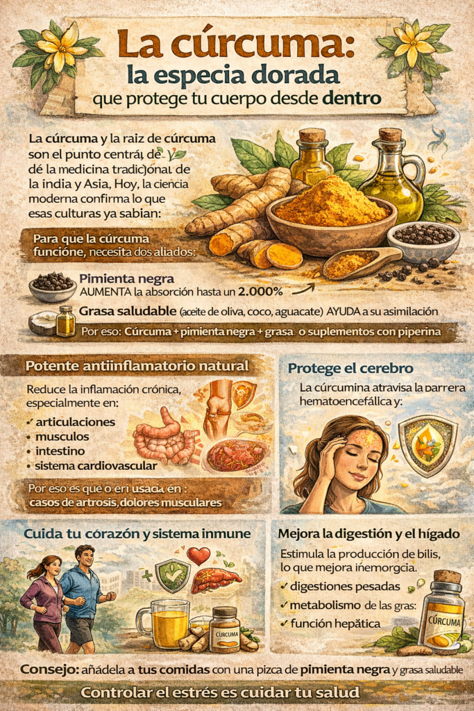 Durante siglos, la cúrcuma ha sido utilizada en la medicina tradicional de la India y Asia. Hoy, la ciencia moderna confirma lo que esas culturas ya sabían: la cúrcuma es uno de los antiinflamatorios naturales más potentes que existen.