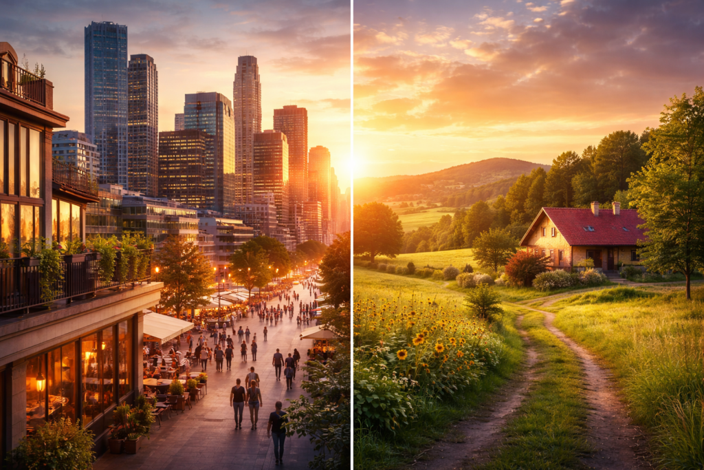 Durante años hemos asociado la ciudad con oportunidades y el campo con tranquilidad. Pero… ¿realmente uno es mejor que el otro para nuestra salud y felicidad?